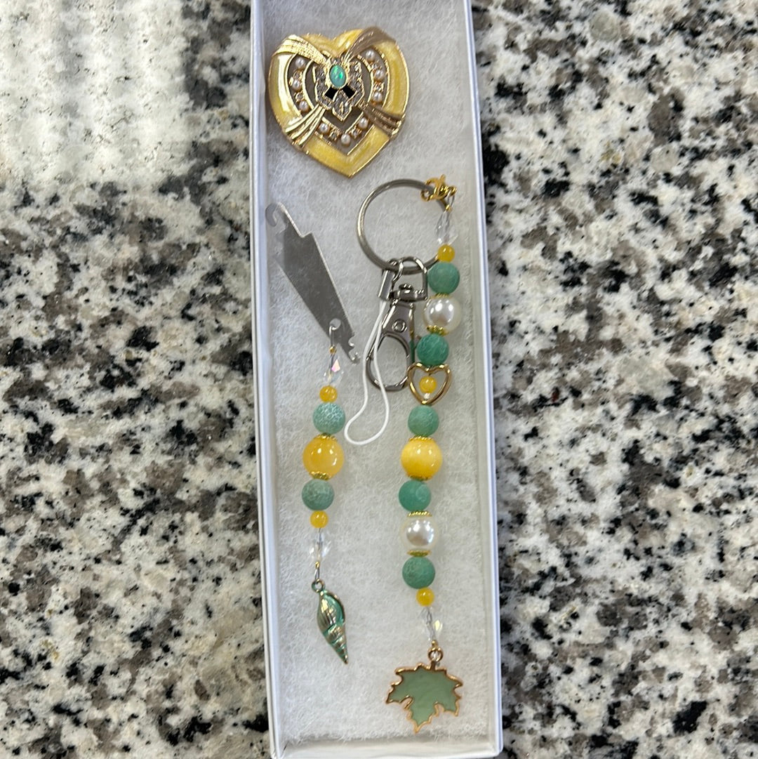 Jade and Gold Scissor Fob Set