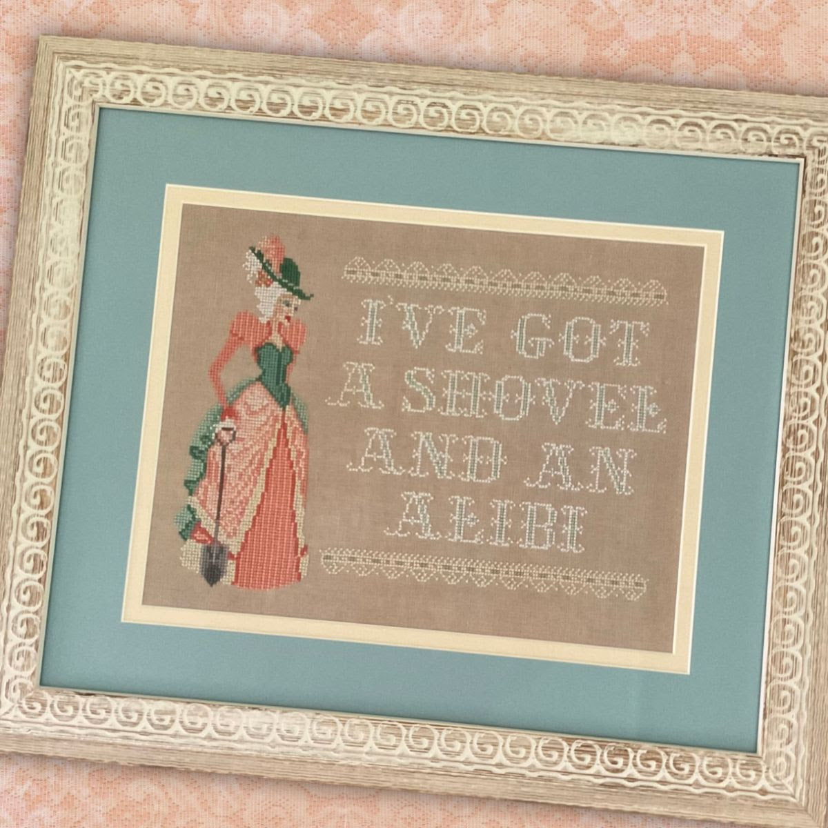 Model stitched on 28 count Confederate Grey Linen by Weeks Dye Works using DMC threads