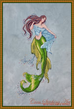 "The Siren Of The Deep" model is stitched on 32 count Belfast Linen Meadow Mist by Silkweaver.